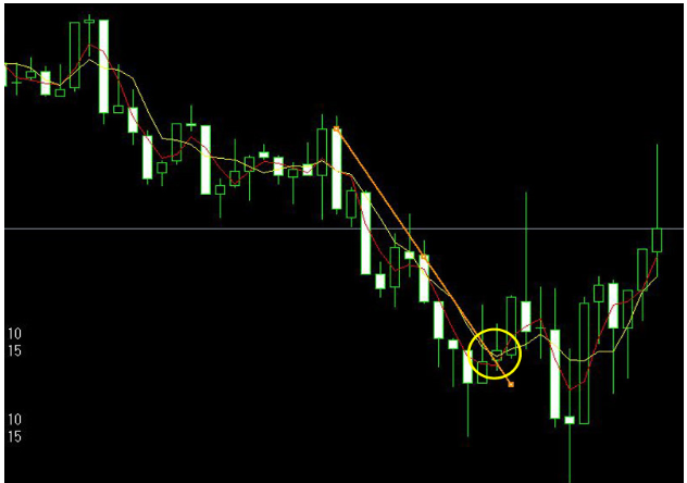 オレンジのトレンドラインを抜いた後、反転しているのがよく分かると思います。